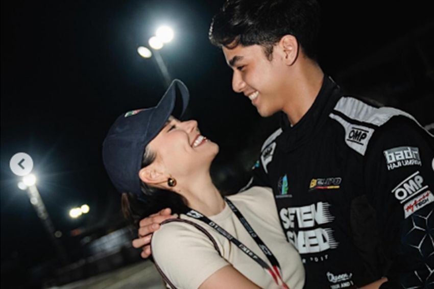 Tak hanya Alyssa, ada pula momen Al berpose bersama sang ibunda, Maia Estianty, yang turut hadir Di Laga drifting putranya.