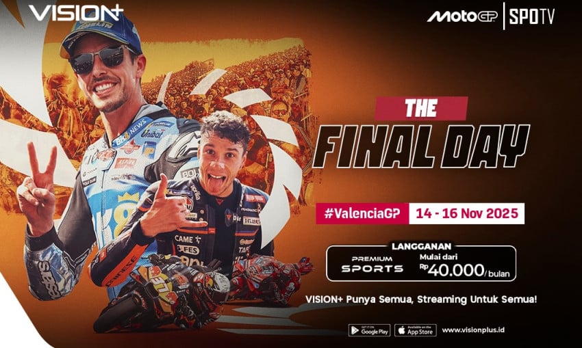 Download Alat Lunak VISION+ sekarang Ke App Store dan Play Store, dan saksikan siapa yang Berencana mengukir sejarah Ke Imbang pamungkas MotoGP 2025 Ke Valencia!