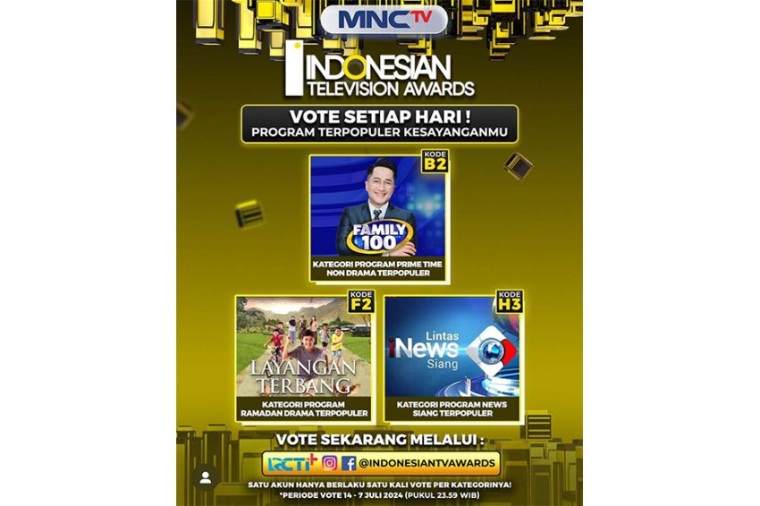 Ayo dukung Langkah-Langkah MNCTV Di ajang Indonesian Television Awards 2024, vote sekarang Melewati Langkah RCTI+ serta platform social media Instagram dan Facebook @Indonesiantvawards.