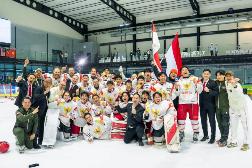 Timpilihan Hoki Es Indonesia mengguratkan tinta emas Di sejarah Latihan nasional Di membawa pulang medali emas SEA Games 2025 / Foto: Ist