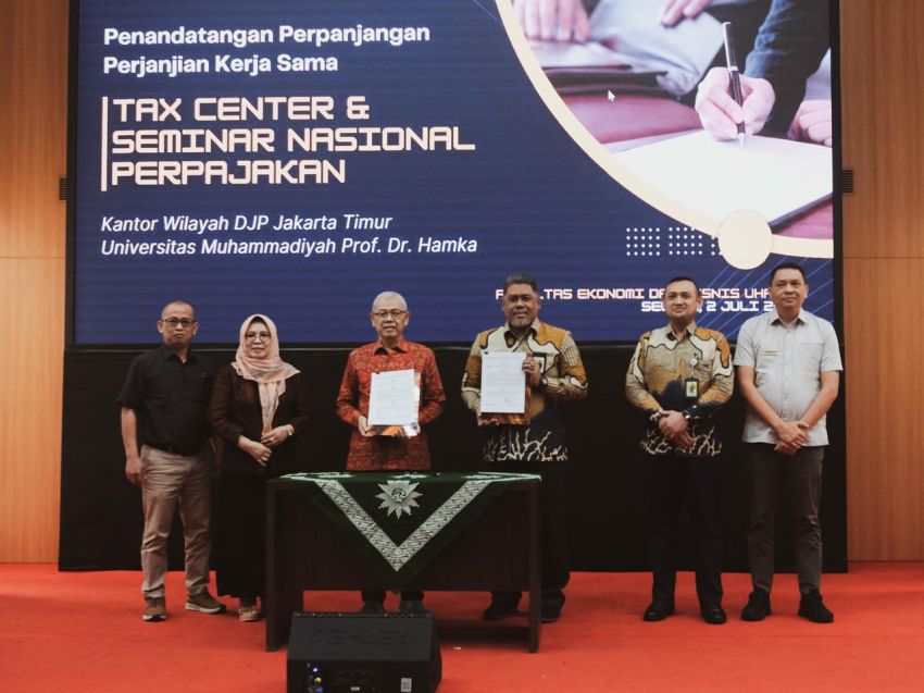 Kanwil DJP Jakarta Timur berkolaborasi Bersama UHAMKA Mengadakan penandatanganan PKS dan Seminar Perpajakan. FOTO/dok.SINDOnews