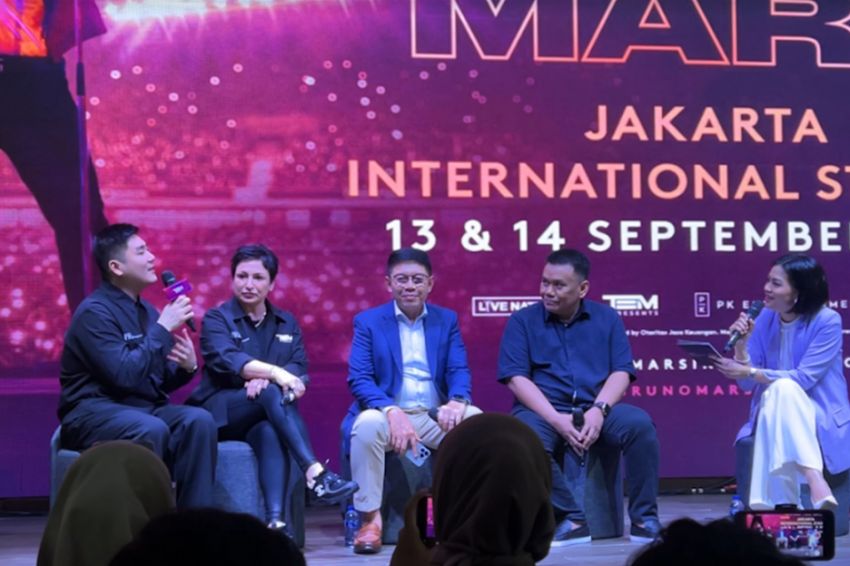 Promotor Bersama PK Entertainment Untuk Konferensi Pers Pentas Musik Bruno Mars Live in Jakarta, Jumat (21/6/2024). Foto/MPI/Annastasya Ryzkia