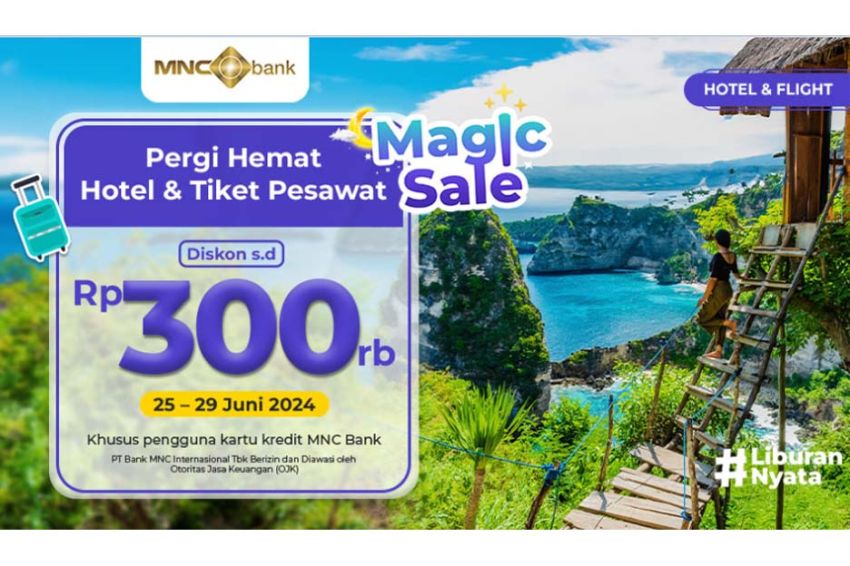 Anda sangat bisa Merasakan keuntungan berupa diskon hingga Rp300.000 Sebagai memesan hotel dan tiket pesawat rute domestik serta internasional. Keuntungan ini khusus Untuk Anda pemegang kartu kredit MNC Bank.