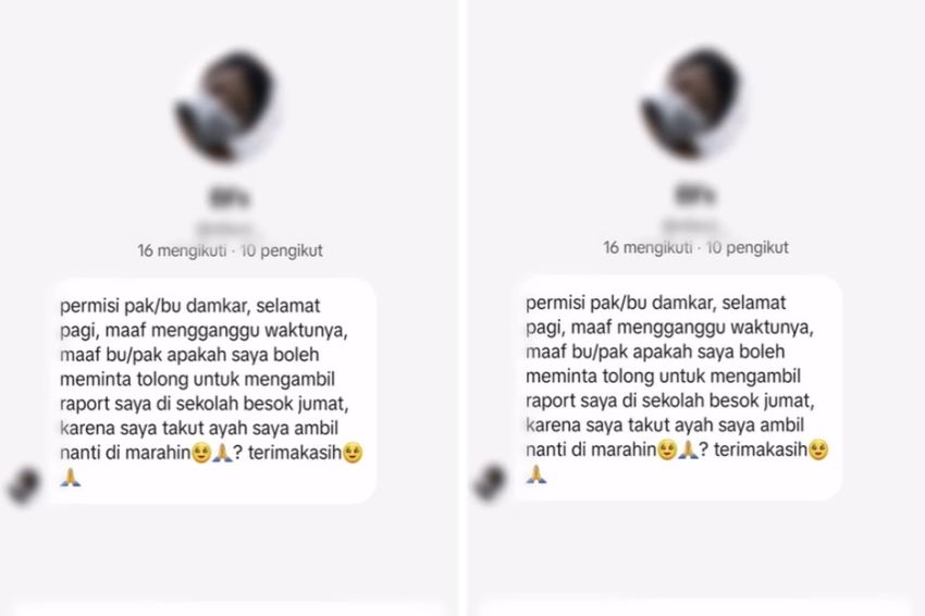 “Permisi pak/bu damkar, selamat pagi, maaf mengganggu waktunya. Maaf bu/pak apakah saya boleh meminta tolong Bagi Membahas rapor saya Ke sekolah besok Jumat,” bunyi pesan itu dikutip Jumat (21/6/2024).