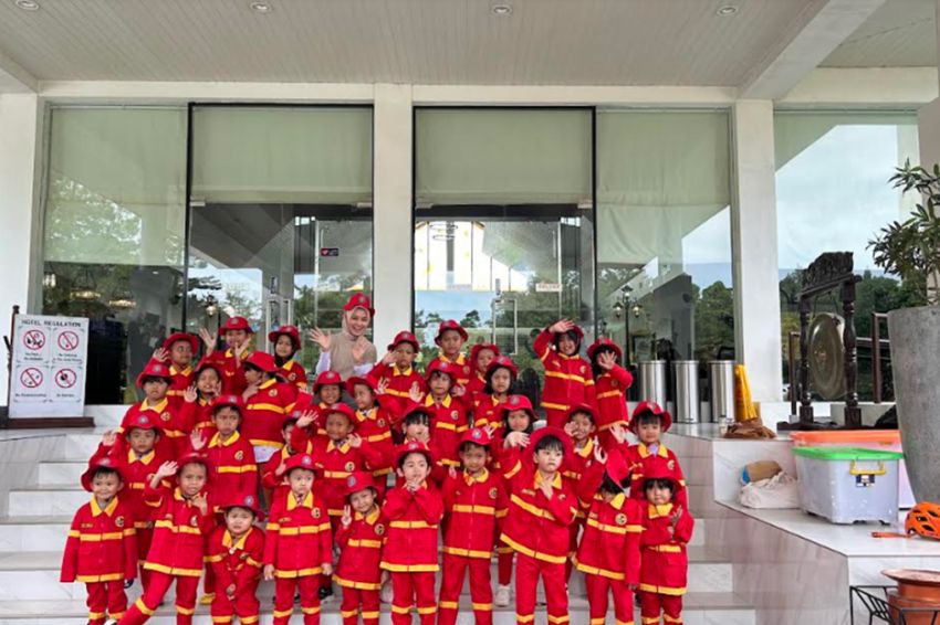 Kegiatan firefighter yang diadakan Lido Lake Resort merupakan Belajar kepada anak-anak Sebagai menanggulangi bencana kebakaran. Foto/MPI/Annastaya Ryzkia