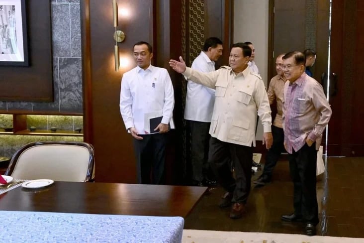 Pemimpin Negara Prabowo Subianto Merasakan kunjungan mantan Wakil Pemimpin Negara Jusuf Kalla (JK) Di Presidential Lounge, Istana Kepresidenan Jakarta, Selasa (4/2/2025). Foto/Setpres