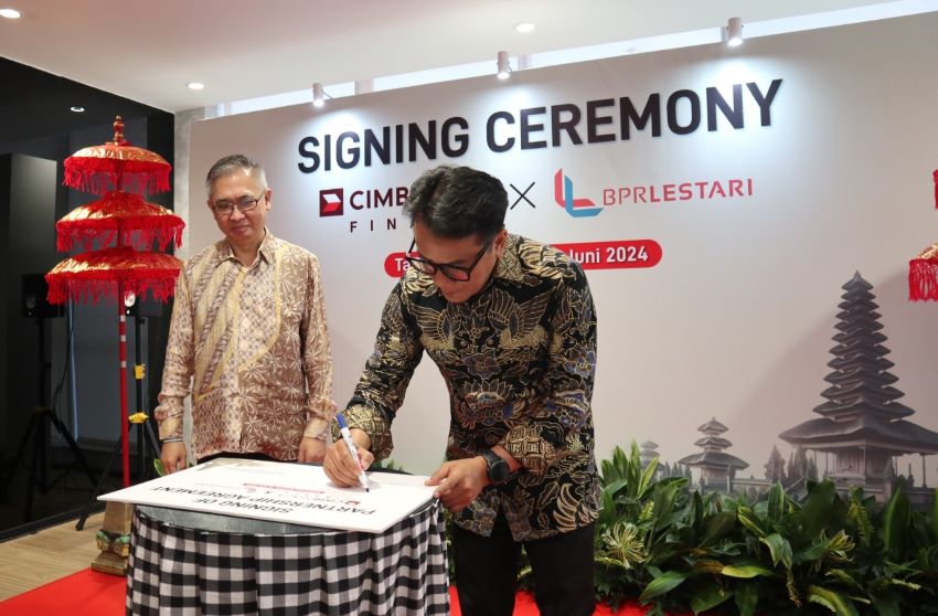 Penandatanganan kerja sama penyaluran KKB Di Bank Lestari Bali (BPR) dan CIMB Niaga Finance, Di Tangerang, Rabu (19/6/2024). FOTO/Ist