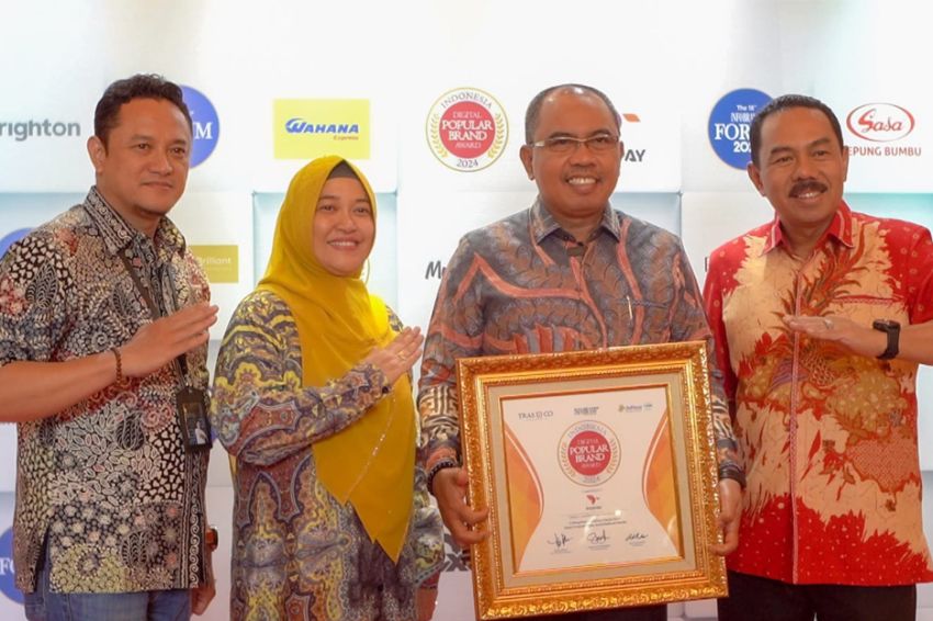 Direktur Usaha Jasa Keuangan Pos Indonesia Haris (kedua Di kanan} usai Merasakan Apresiasi Ke ajang Indonesia Digital Popular Brand Award (IDPBA) 2024 Ke Jakarta, Kamis (27/6/2024). Foto/Dok. SINDOnews