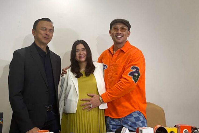 Denny Sumargo dan Olivia Allan bersama Praktisi Medis mereka, Arie Polim. Pasangan ini Di bersiap menyambut kehadiran anak pertama mereka yang diprediksi lahir Ke akhir Juli 2024. Foto/MPI/Nurul Amanah