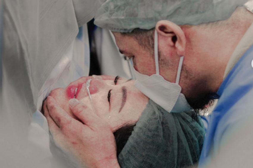 Untuk postingan itu terlihat Chevra memegang wajah Via sambil mencium keningnya Di momen persalinan. Perasaan senang dan terharu campur aduk Di momen tersebut, terlihat Via tak bisa menahan laju air matanya.