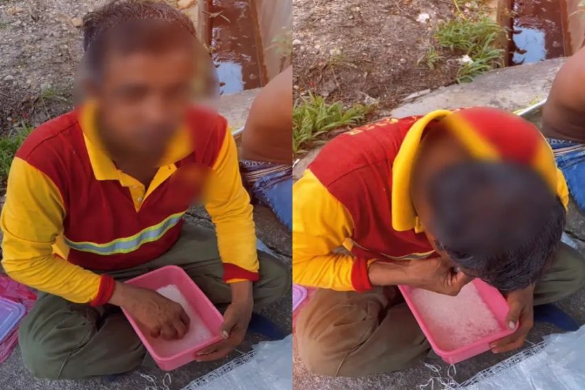 Meski demikian, pria itu tetap lahap menyantap makanannya. Alih-alih menggunakan Alat, pekerja itu langsung memakannya memakai tangan. “Aku melihatnya makan nasi putih hanya Di air,” tulis keterangan video Hingga akun TikTok @ben.ismail_.