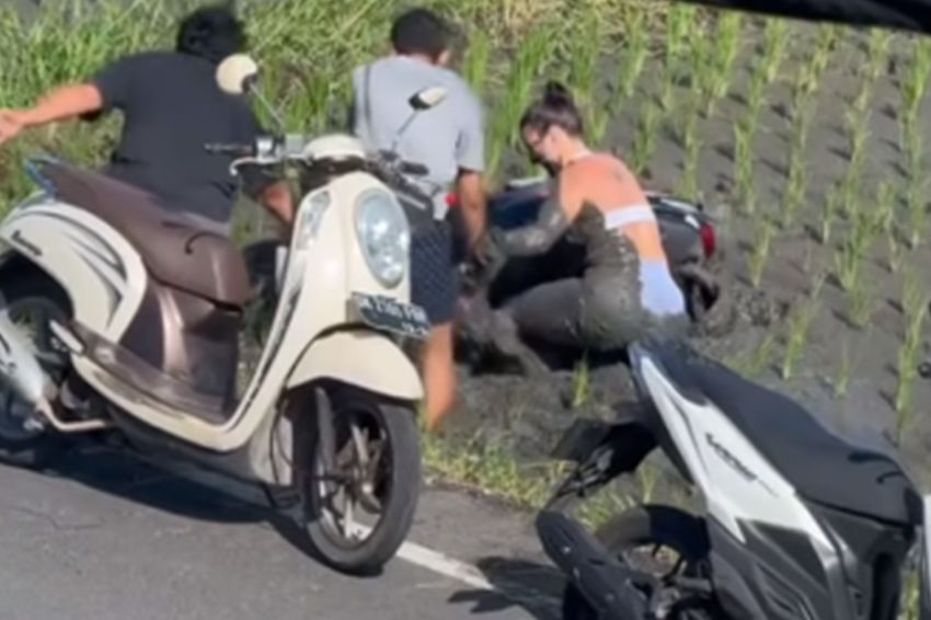 Wanita bule Di Bali Mutakhir-Mutakhir ini viral Lantaran jatuh Di persawahan warga Pada Lagi naik Kendaraan Bermotor Roda Dua. Foto/Instagram @balidaily
